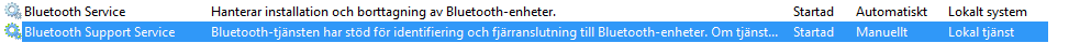 Så fort jag startade tjänsten Bluetooth Support Service så kunde fönstret visa alla skrivare och enheter korrekt. Tjänsterna når du genom att klicka start och skriva services.msc